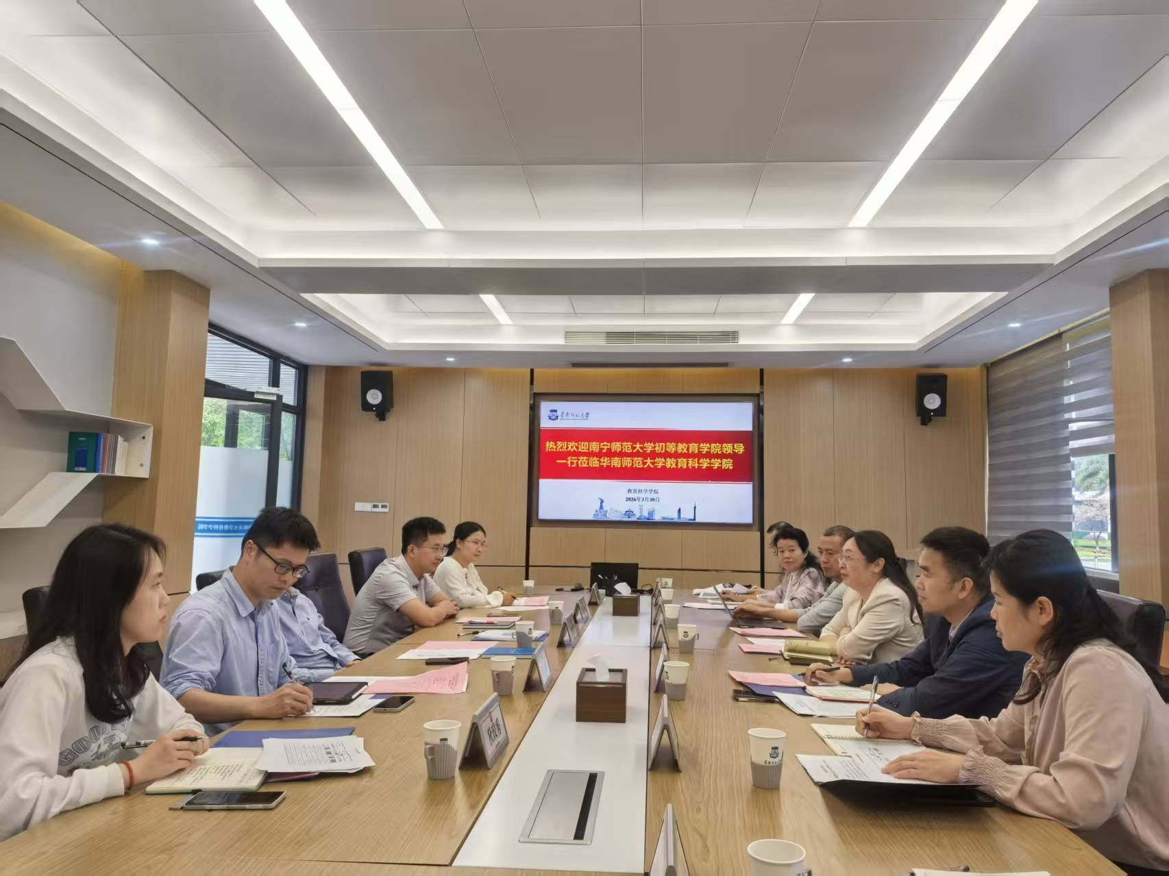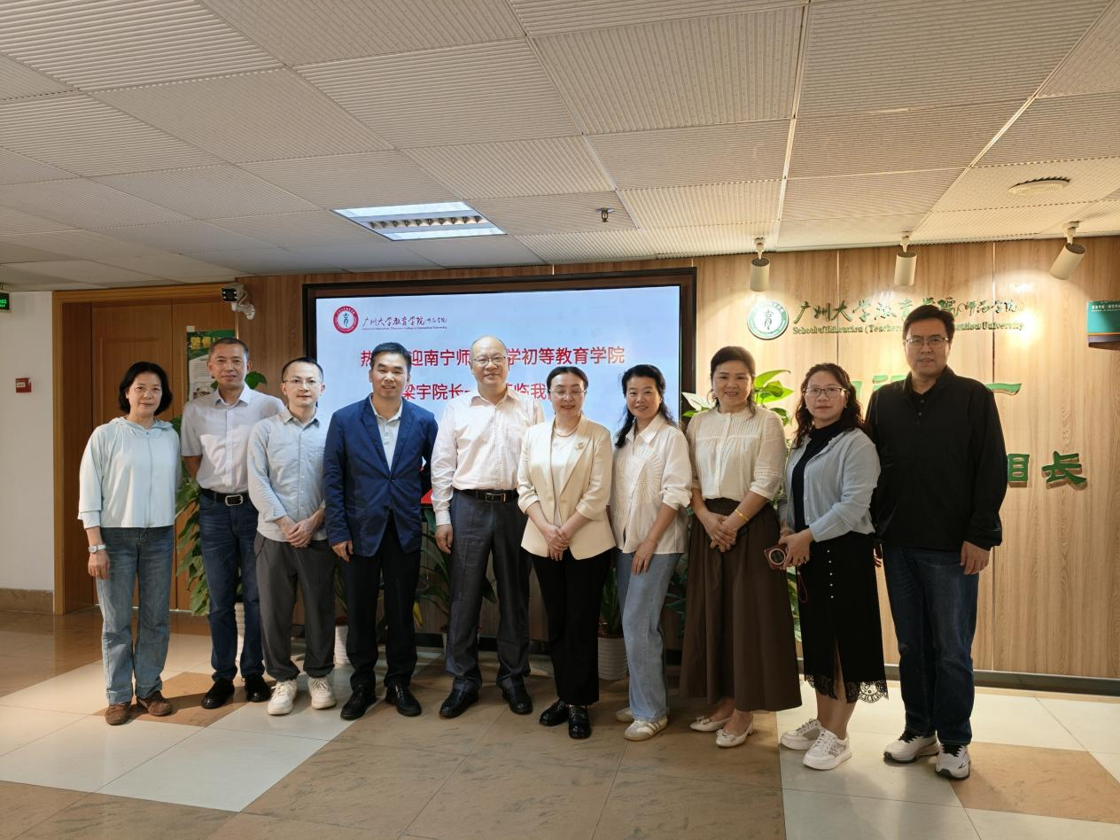 为贯彻落实学校“攀高峰、强特色、创双优,促进学校特色内涵发展”的教育思想大讨论精神,探索“十五五”期间小学教育专业建设与区域教育发展的适配性路径,推动教育链、人才链与创新链深度融合,增强初等教育学院服务广西基础教育发展的专业贡献力、人才支撑力与社会影响力2026329—31日初等教育学院梁宇院长一行7人赴粤港澳大湾区教育高地——广州市,对华南师范大学教育科学学院与广州大学教育学院的小学教育专业进行深度调研。通过座谈交流、资料研读、课堂观摩、实验室观摩等形式,重点学习其在人才培养模式创新、课程体系改革、实践教学体系构建、教育科研转化等方面的先进理念与成功经验。