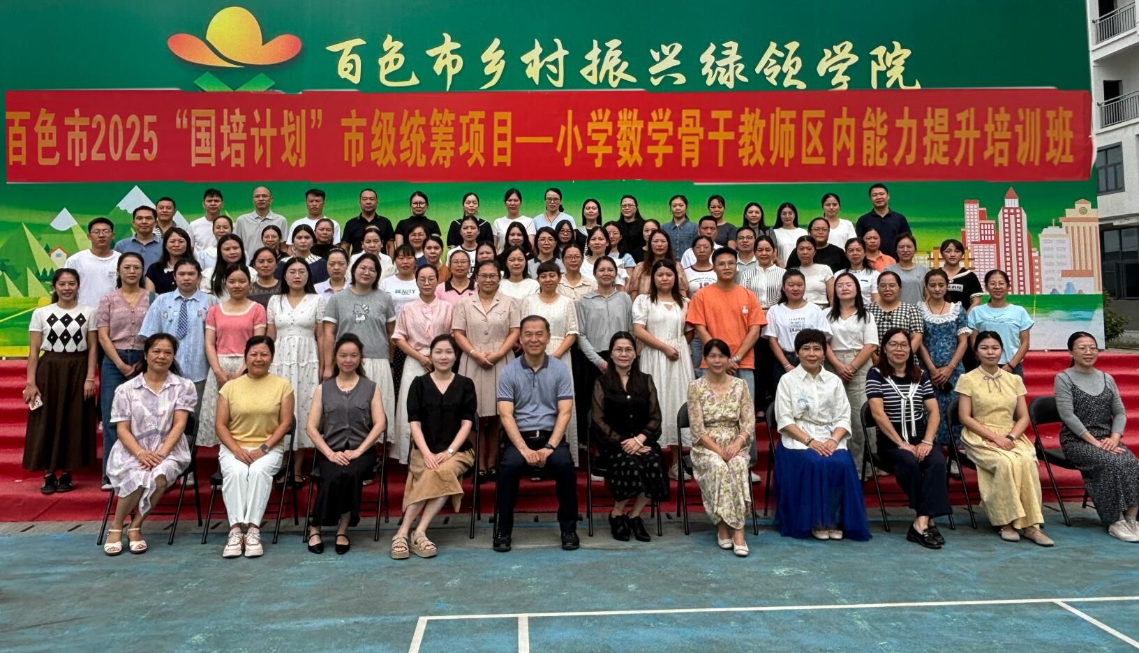 副院长卢锦珍、项目首席专家周俊伽及来自百色市各地的80位小学数学骨干教师参加了此次培训班的开班。