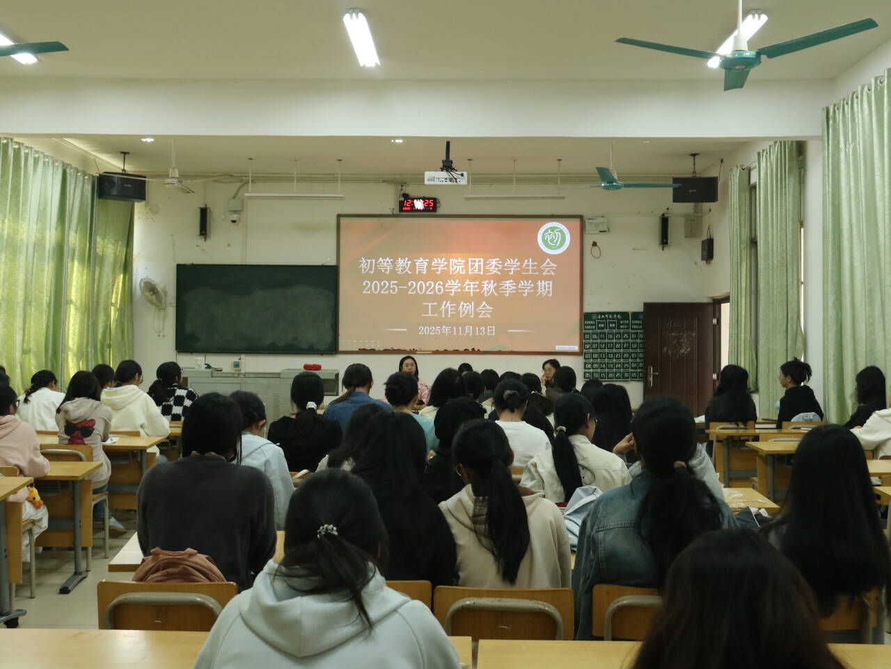 于五合校区综合楼109教室召开2025年秋季学期团委学生会工作例会,学院团委书记李欣、学工办辅导员秦晴、李露露及团委学生会全体成员参会。