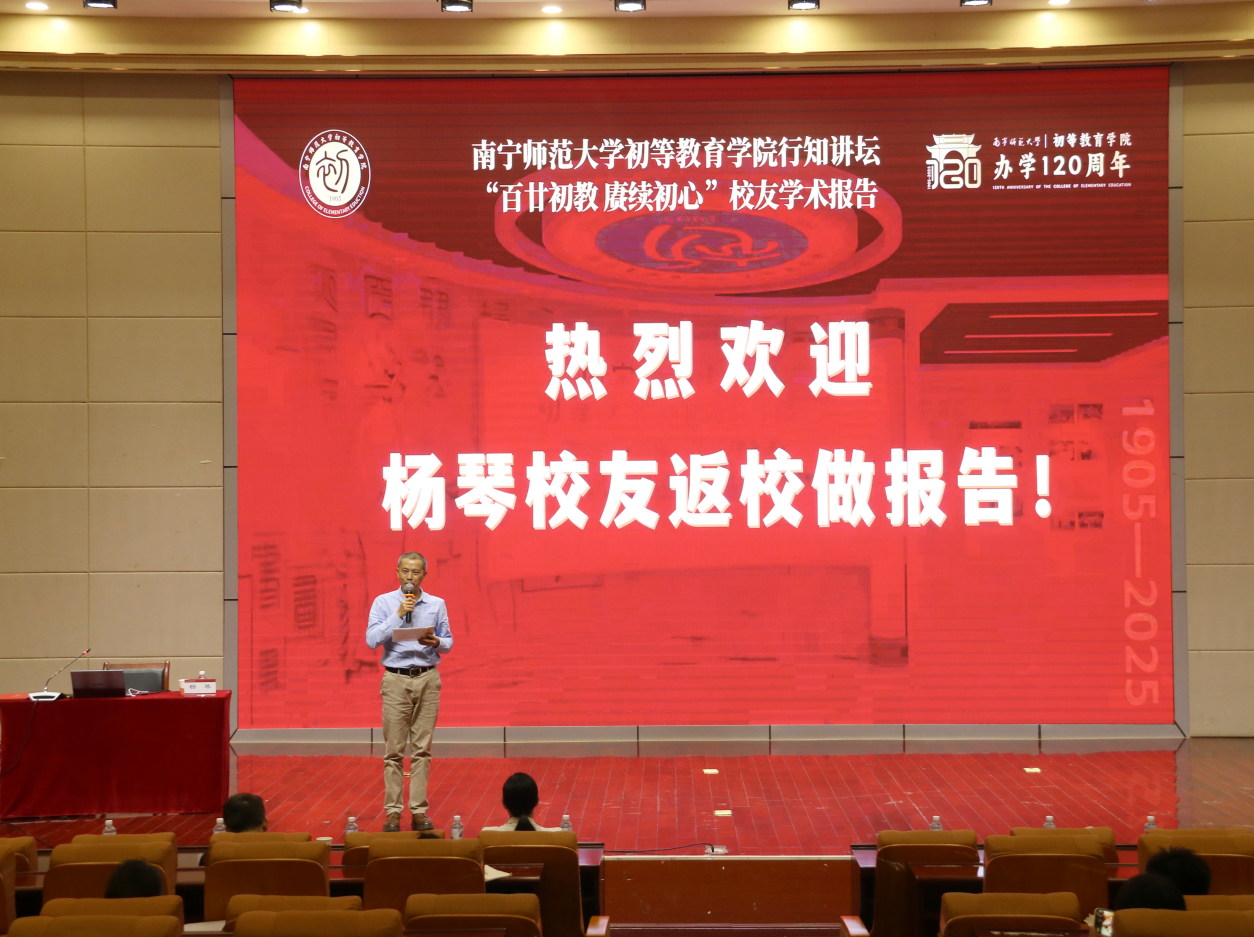 校友杨琴以《心之所向,素履以往——我的教育热爱与成长之路》为主题,分享了自己深耕基础教育领域的实践与感悟:她坦言“唯有热爱,可以抵挡岁月漫长”,为从事“阳光下最美丽的红领巾事业”倍感幸福;她秉持“多一把评价的尺子就多一位优秀的学生”的育人理念,主张给孩子多一份选择、让人生多一份精彩;她更以“甘为‘孩子王’、乐做‘乡妹子’、勇当‘拓荒牛’、敢做‘大家长’、愿为‘点灯人’”的自我定位,诠释了教育工作者的责任与情怀。现场,她还展示了参与少先队风采大赛的经历,鼓励在场师范生以热爱为底色、以行动追理想。